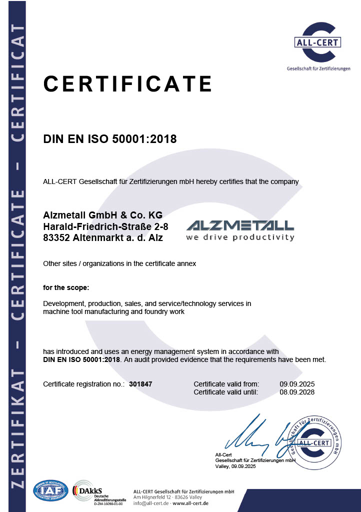 - ALZMETALL’s holding company in Germany successfully opperates three independent business segments in line with its branding slogan „we drive productivty“.